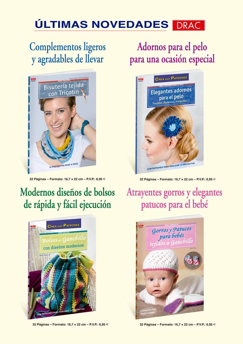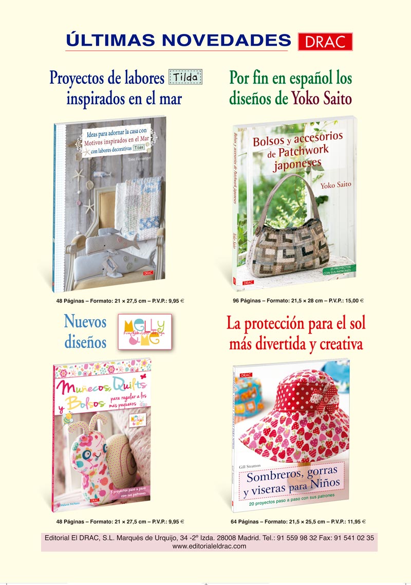 Libros de labores y manualidades: patchwork, encaje de bolillos, bordados, fieltro, macramé, abalorios, etc.